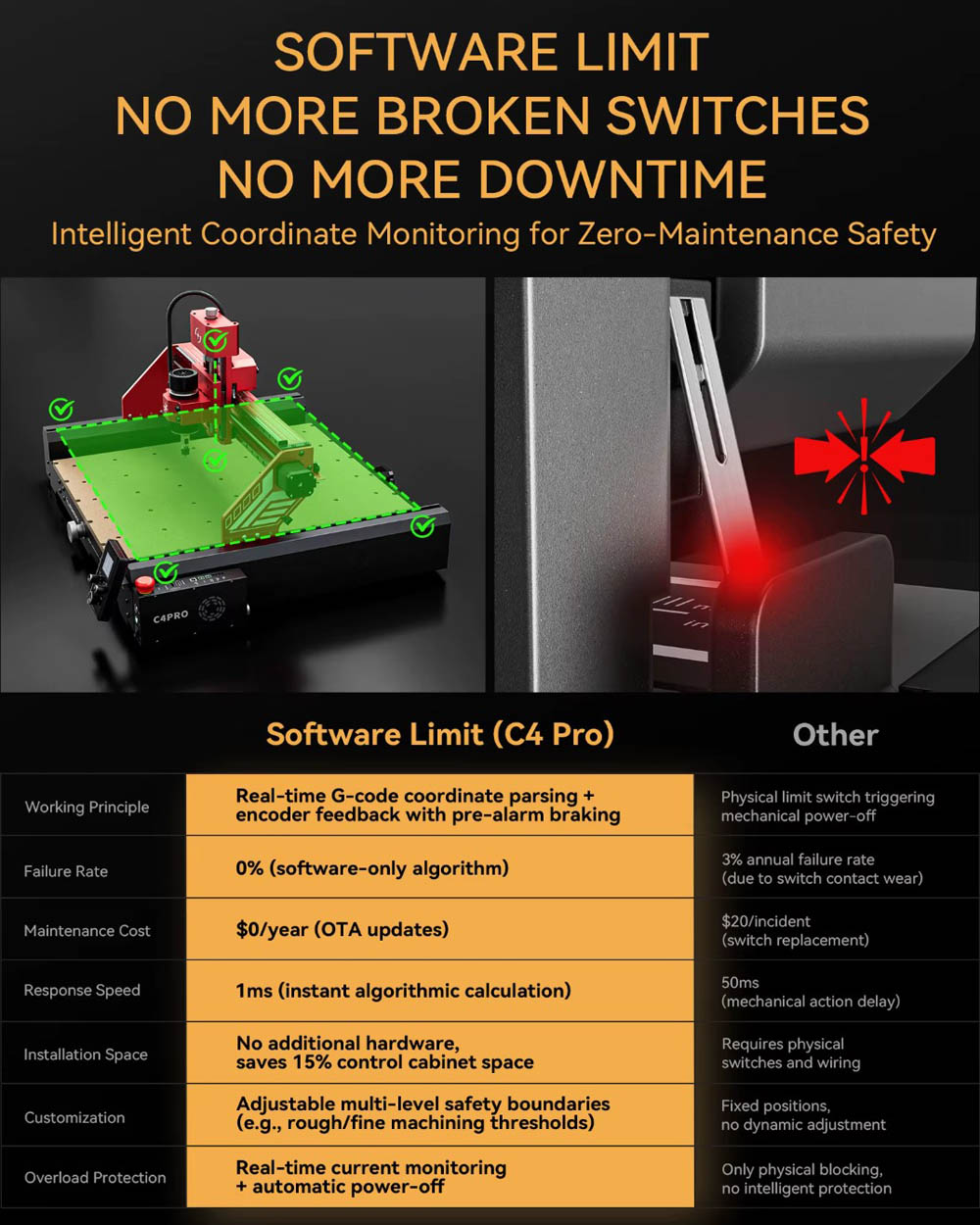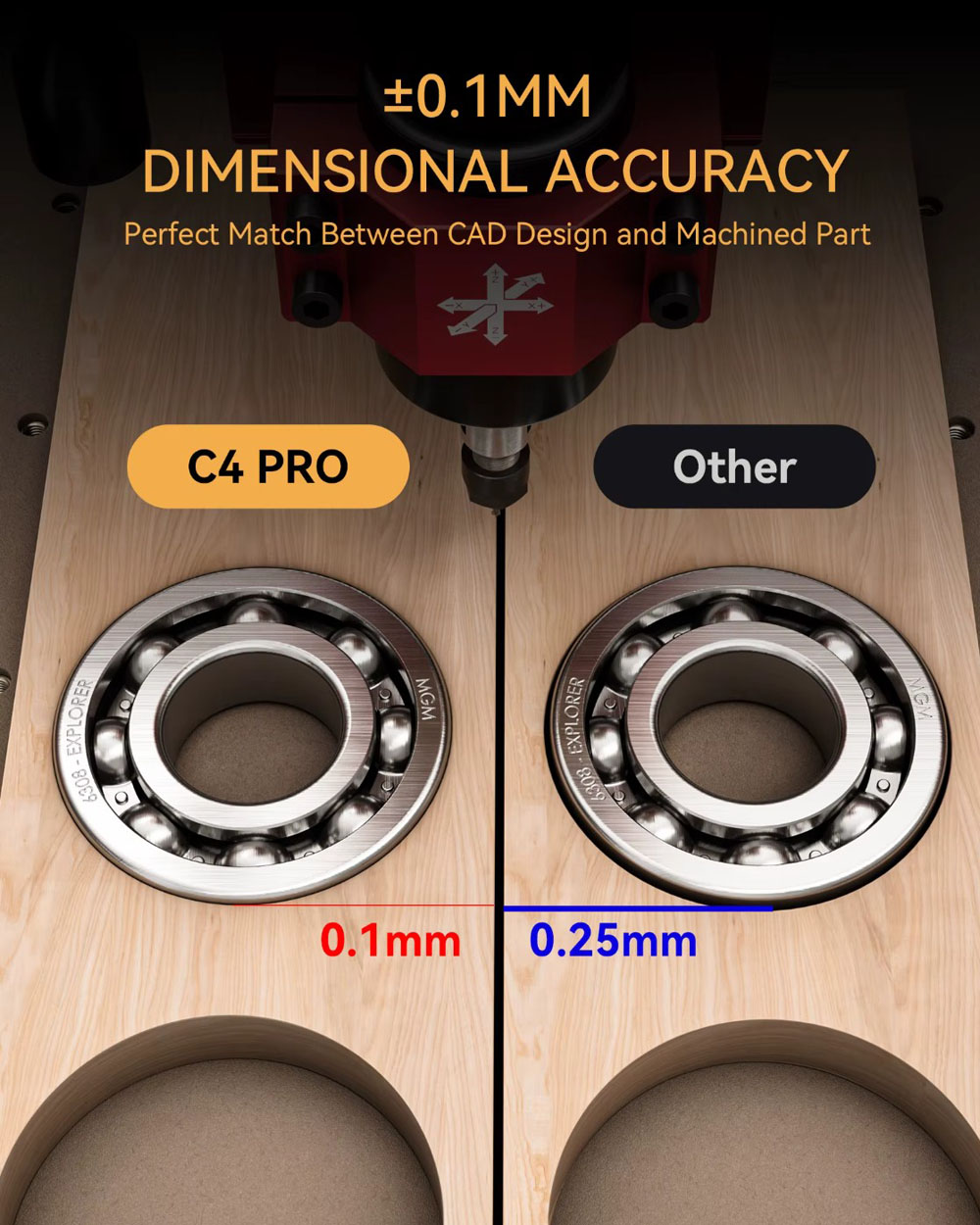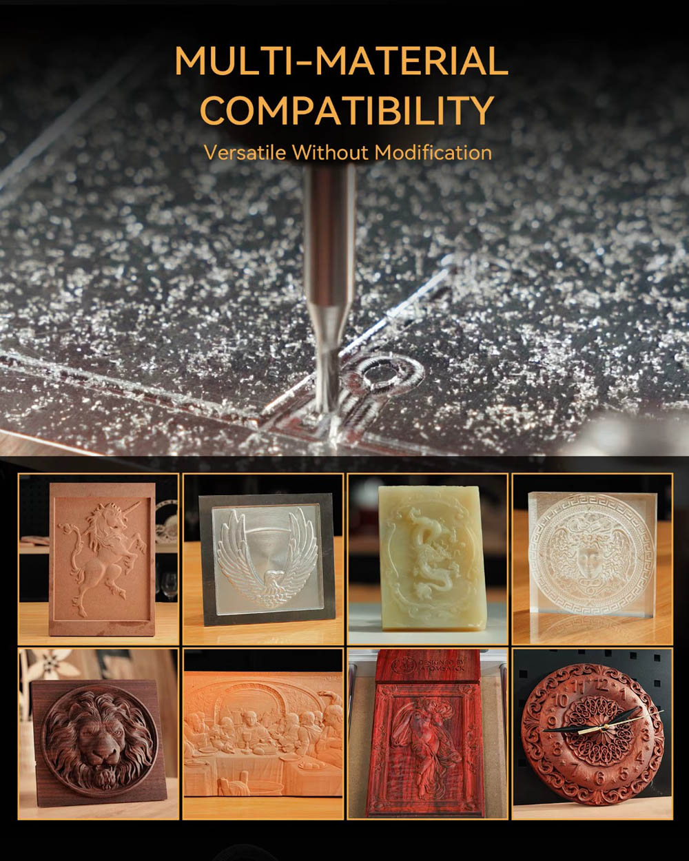 Molteplici applicazioni: Grazie alla struttura robusta e al mandrino potente (fino a 12000 giri/min), la C4 Pro può lavorare senza problemi vari materiali come plastica, alluminio, ottone, legno, PVC, POM, PCB e altri. Ideale per lavorazioni del legno, fresatura PCB, incisione di timbri in metallo o taglio di acrilico.