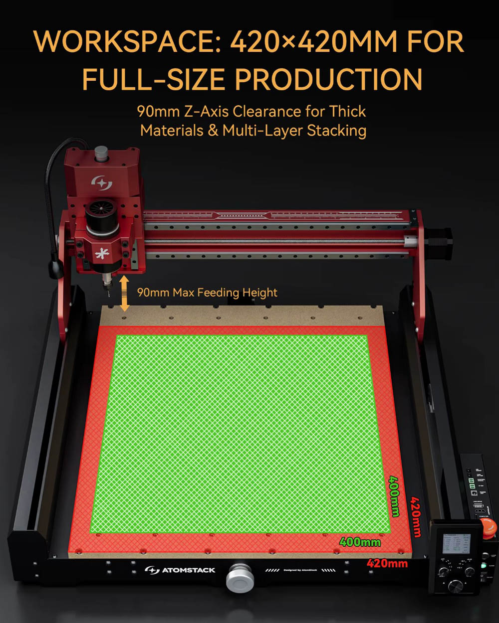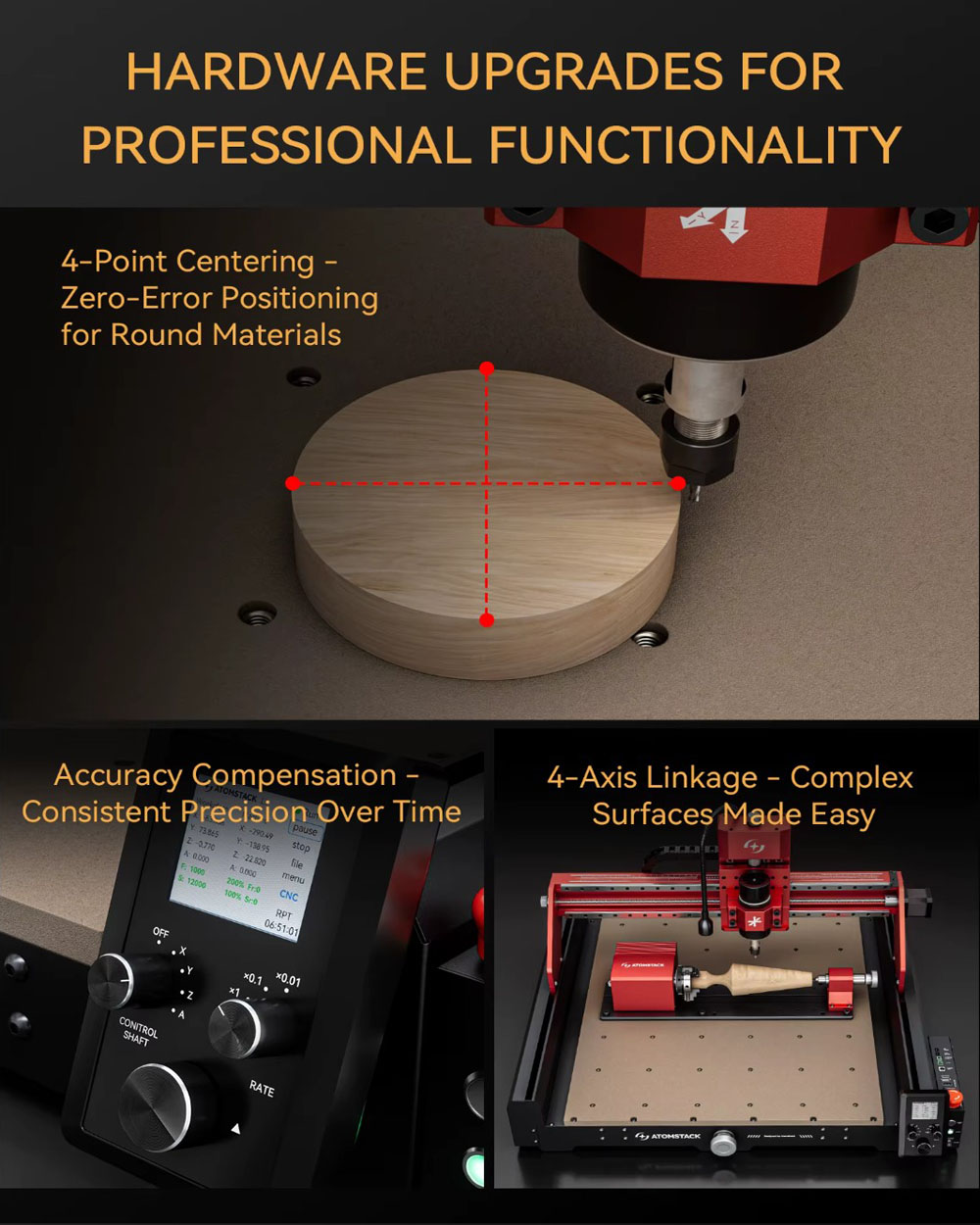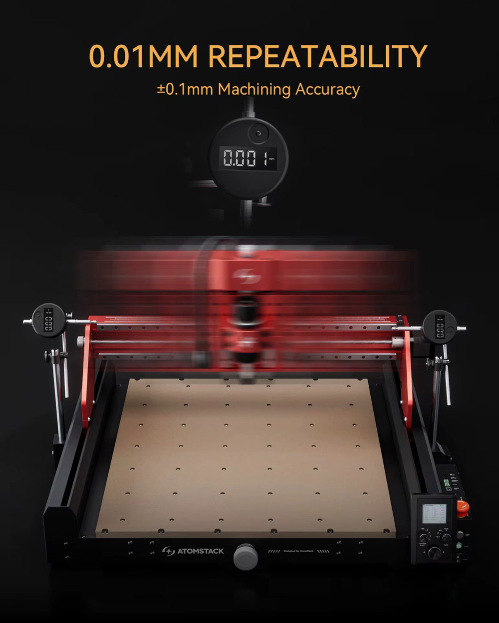 Controller: ATOMSTACK 4AXIS INTELLIGENT CONTROLLER V1.0 (versione V2.0) dotato di una serie di funzioni professionali finora disponibili solo su macchine industriali. Ciò migliora sensibilmente comfort ed efficienza di lavoro.