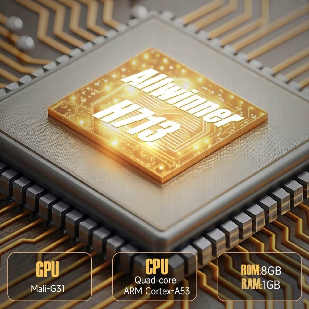 Il processore avanzato Allwinner H713 con CPU quad-core e GPU Mali-G31 assicura un funzionamento fulmineo e prestazioni eccellenti.