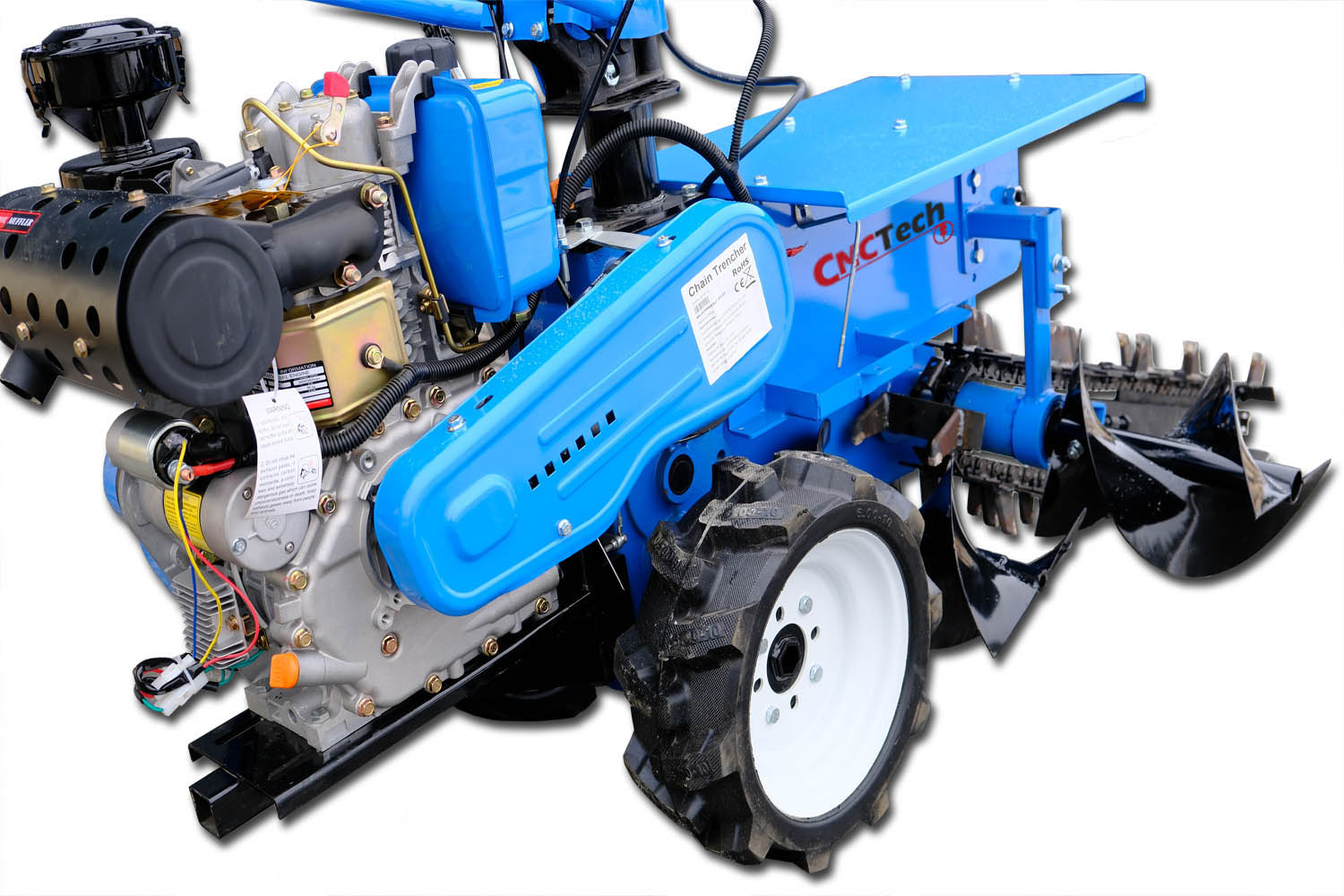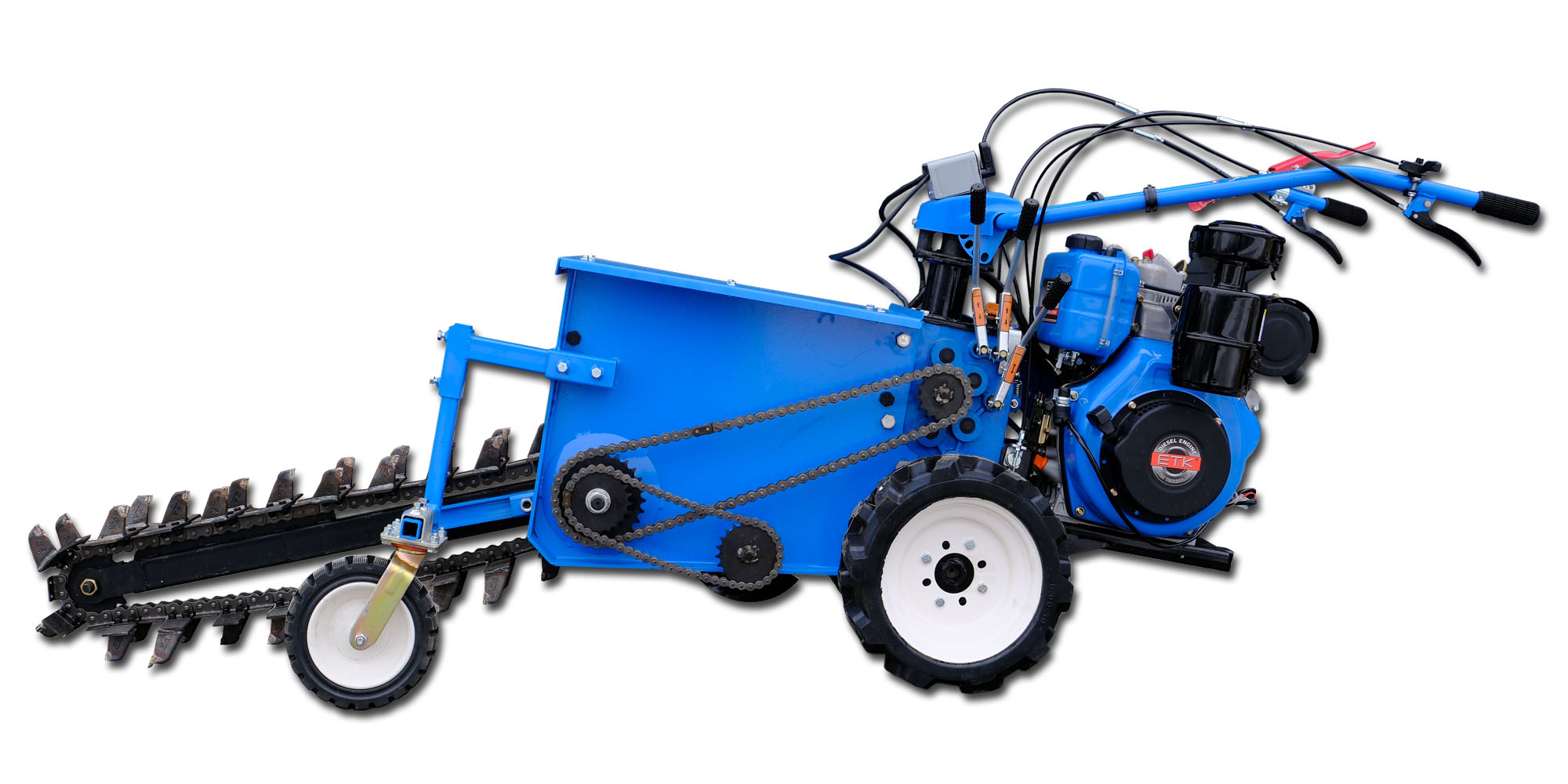 Questa macchina semovente è stata progettata per la massima efficienza nella posa di impianti interrati. Consente di realizzare trincee fino a 80 cm di profondità e 17 cm di larghezza.